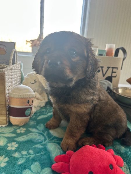 These CKC F1b cavapoo puppies turned 8 weeks old on December 9th. They will be in the 15 to 20lb range. Unique colors. Non shedding. One year health guarantee. First shots and regular deworming. Worldwide shipping available. Follow us on instagram @magnolia_oak_cavapoos to see videos. Text 865-851-3295 for more details or to set up a FaceTime